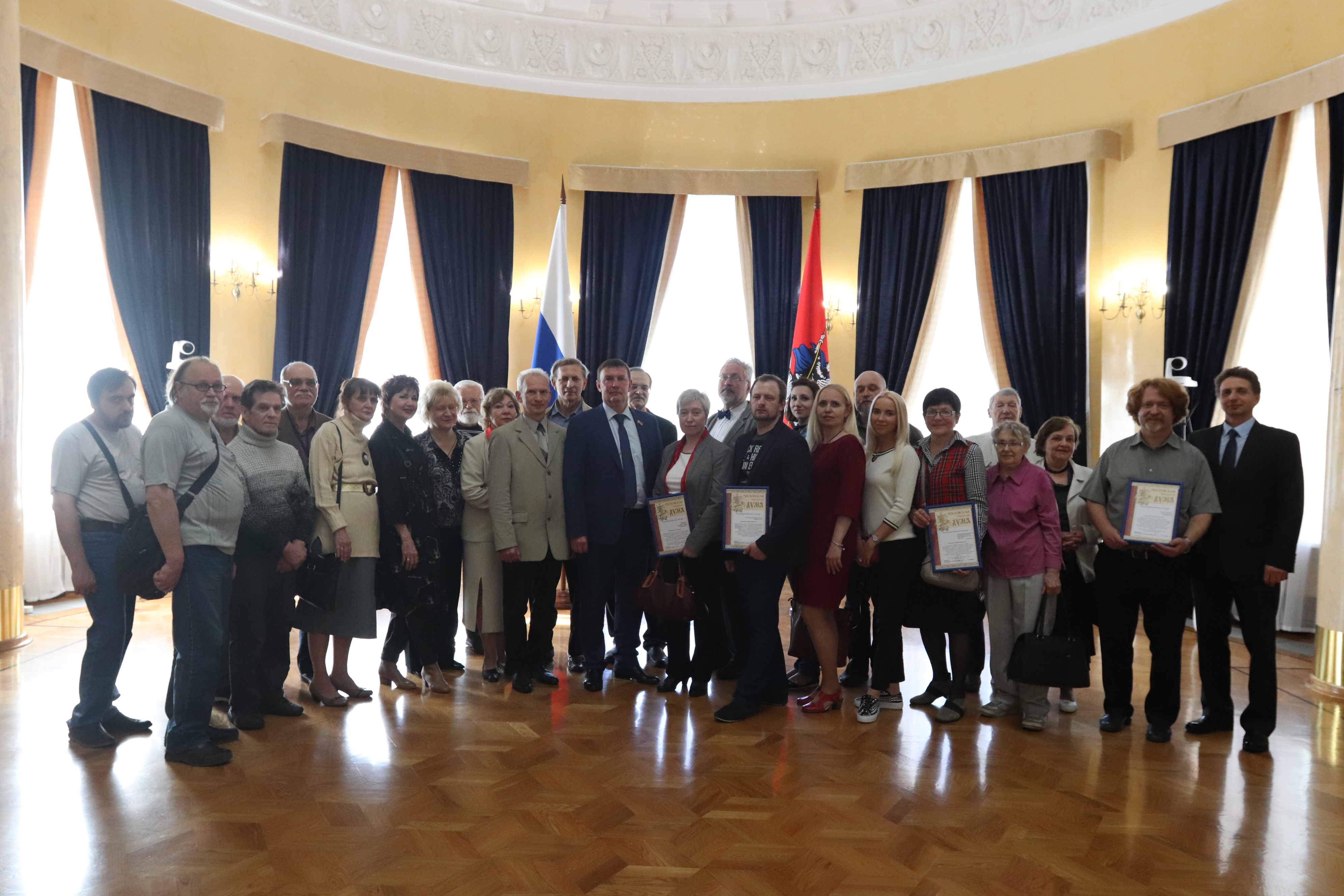 В Московской Городской Думе прошла выставка «Дню Победы посвящается». На выставке были представлены работы художников разных поколений, рассказывающие о войне, о Победе,о героях и полководцах. Это работы художников-фронтовиков: Афанасия Сухинина (Поединок,Берлин взят) и известного художника-графика Андрея Николаева,автора иллюстраций к произведениям о войне,таких как «Сорок первый» Б.Лавренева, «Дни и ночи» К.Симонова, «Это было в Ленинграде» Б.Чаковского, «В августе 44-го» В.Богомолова и другие. Послевоенное поколение представляют работы заслуженного художника РФ Виктора Чайки (Вечная память,Жди меня, Прощание Славянки),а так же работы художников Владимира Орлова (Победный Май), Ивана Базанова (Вера,Надежда,Любовь), Александра Карелина (После боя), Федора Сухинина (На освобожденной земле), Натальи Сазоновой (Портрет фронтовика). Поколение 70-х представляет художник Александр Косничев своими картинами «Натюрморт с гармонью», «Послевоенное лето» . Насмотря на разный жизненный опыт, тема нашей Победы одинаково ярко и позитивно выражена в произведениях художников, посвященных войне. Открыл выставку депутат Мосгодумы Шибаев Андрей Вячеславович.